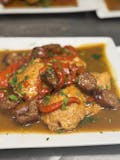 Chicken sauteed with fresh tomatoes, bell peppers, mushrooms, garlic in a white wine sauce.
